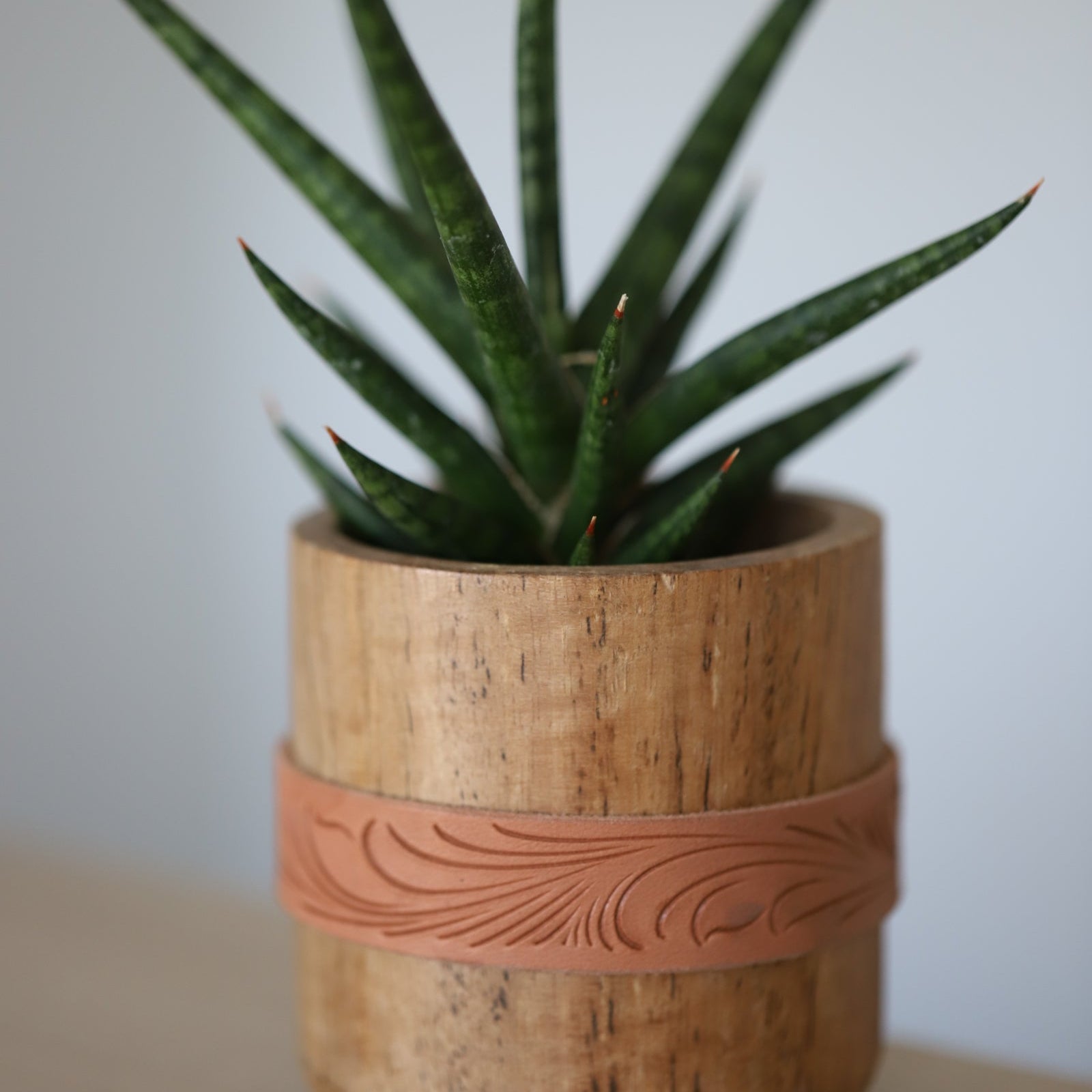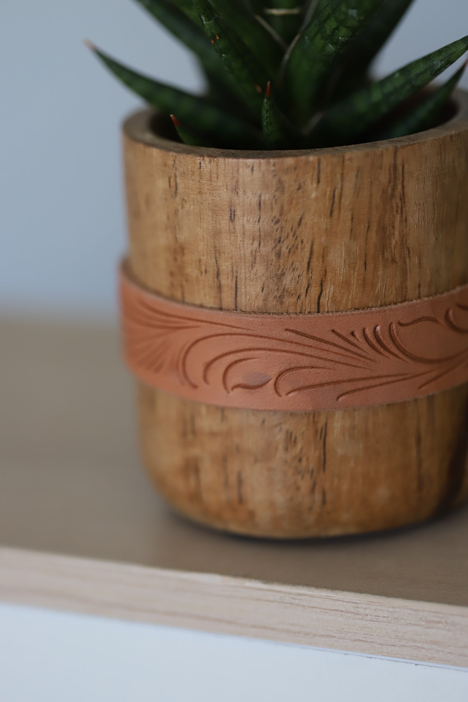 This leather wrap is completely raw and natural. It will age beautifully and darken naturally in sunlight overtime. This is the kind of piece that you'll tell yourself you don't "need," but as soon as you have it in your home it will be an accent piece that you'll admire every time you pass it 😊